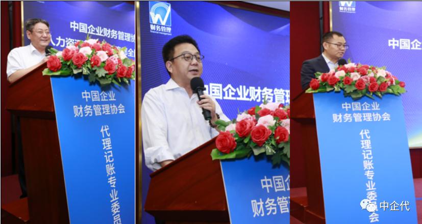 从左往右依次是:中国企业财务管理协会副会长兼秘书长郑述飞、代账专委会会长黄川、代账专委会副会长兼秘书长张国伍