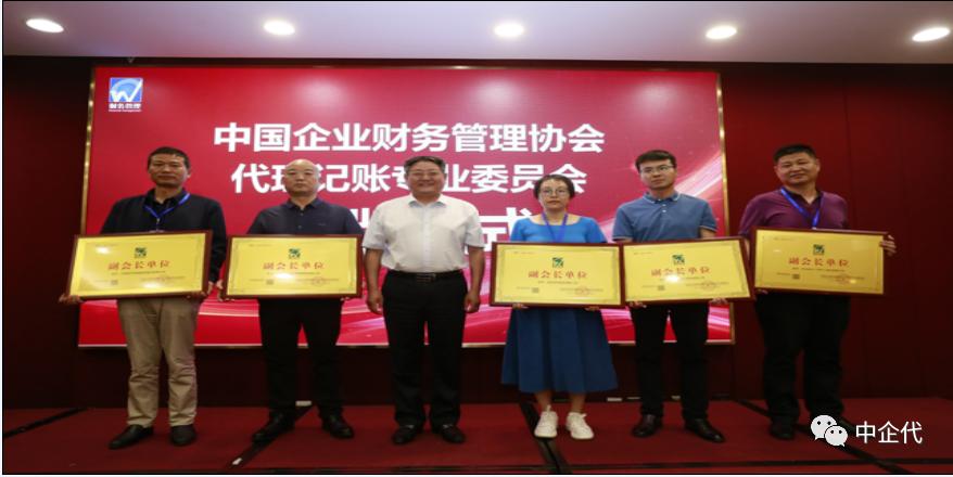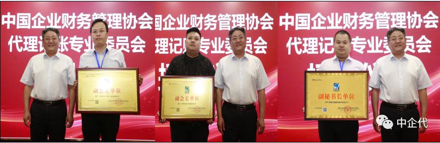 代理记账专业委员会在筹备过程中得到了全国各行业协会的大力支持,同时在专委会成立后积极加入专委会的平台中,论坛期间由中国企业财务管理协会副会长兼秘书长郑述飞为7家单位颁发副会长单位、1家副秘书长单位授牌,他们分别是:悟空财税服务有限公司,北京春雪会计服务有限公司,天津桔子财税服务股份有限公司,河南鑫泰财务管理集团有限公司,昆明景天工税代理有限公司,中天会计(苏州)股份有限公司,今捷(河南)财税研究院有限公司,君瑞财税服务集团有限公司。